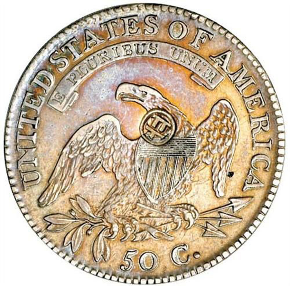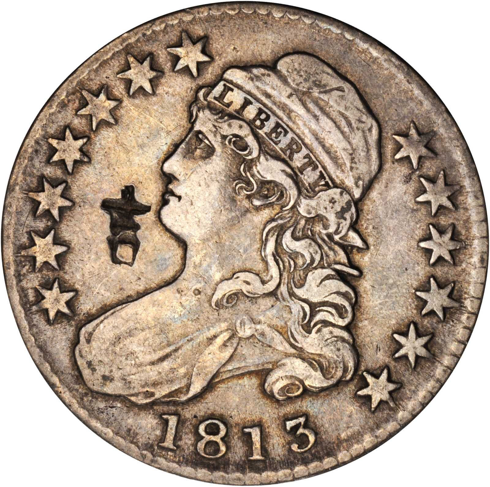 Chopmark on 1813 O-102 Capped Bust Half Dollar. From the Henry Hilgard Collection.