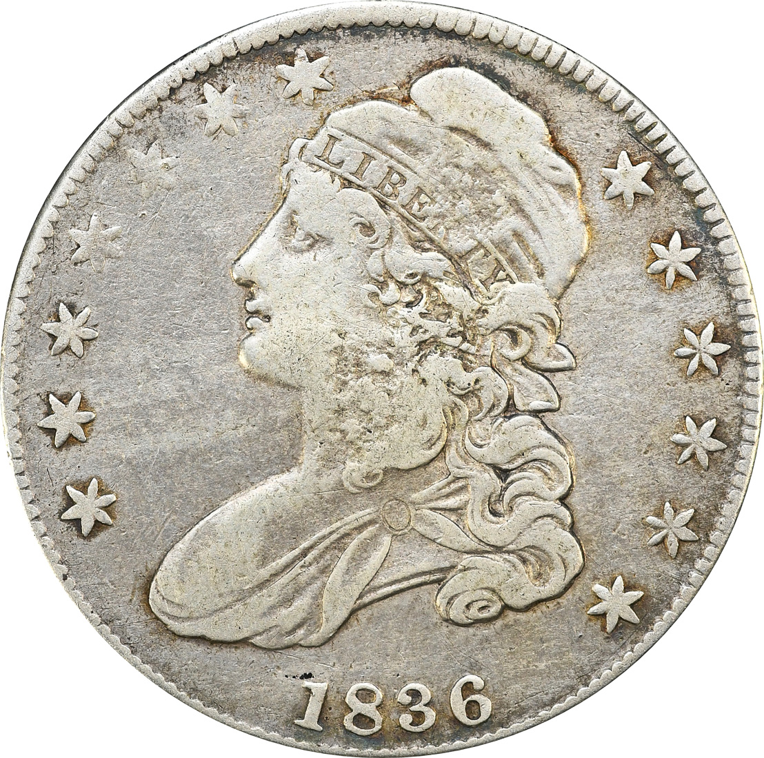 Chopmark on 1836 O-123 Capped Bust Half Dollar
