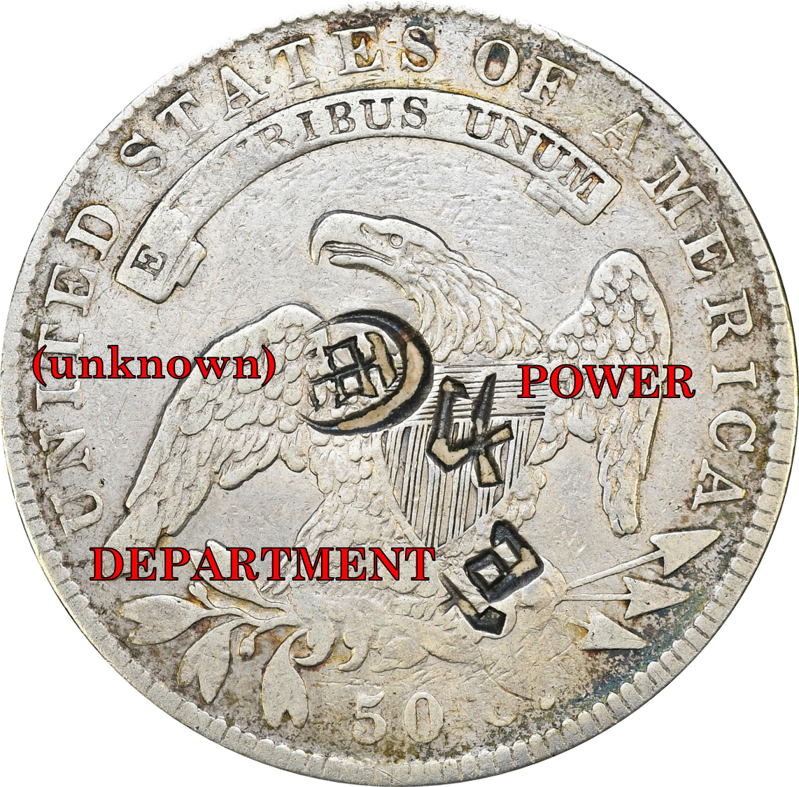 Chopmark on 1813 O-102 Capped Bust Half Dollar. From the Henry Hilgard Collection.
